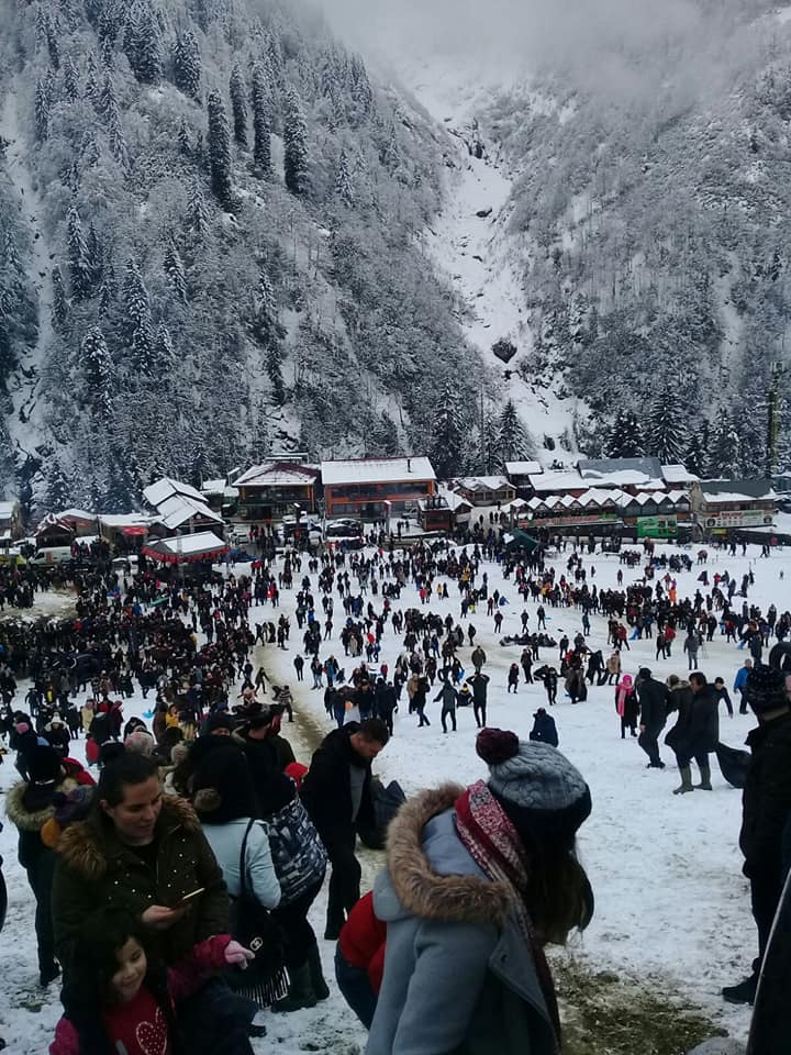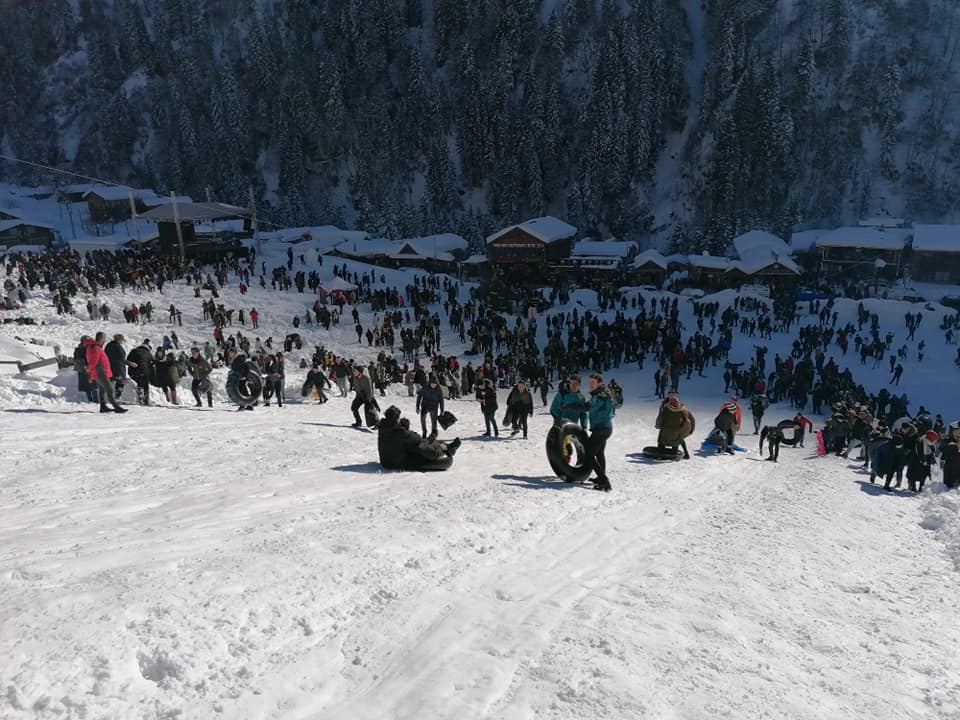 Vatandaşlar yanlarında getirdikleri muşambalar, naylon poşetler, çöp poşetleri ve şambrelleri ile kaydı. Kayarken çarpışanların yanı sıra kayak sonunda duramayanlar heyecanlı dakikalar yaşarken, izleyenleri de eğlendirdi.